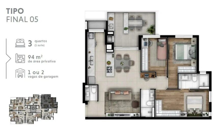 - Área Privativa: 101,00 m²
