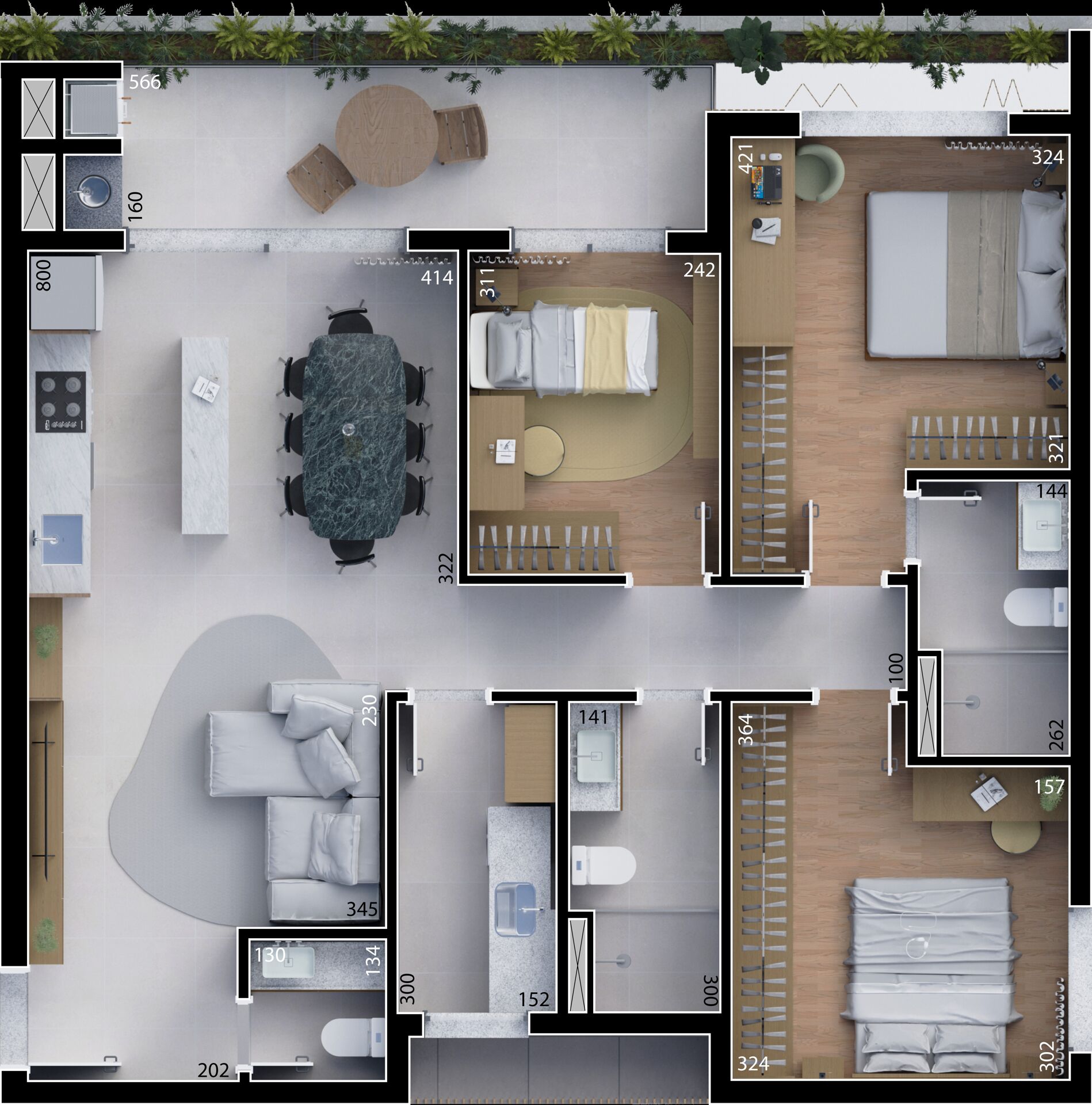 Este lançamento surpreende com uma planta de 101m² privativos pensada para facilitar sua rotina: a lavanderia fica próxima aos quartos, e não na sacada — um detalhe de projeto que proporciona mais praticidade, privacidade e aproveitamento real dos espaços.
