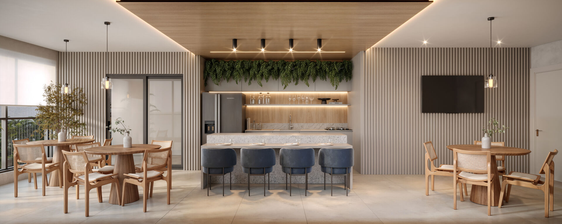 •Bar e áreas de convivência para reunir amigos e família.